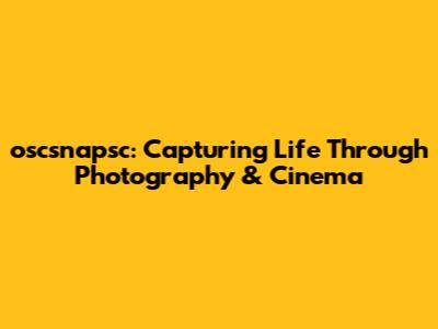 Oscsnapsc: Capturing Life Through Photography & Cinema