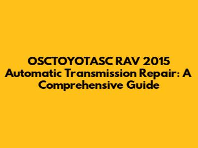 Common Issues in the OSCTOYOTASC RAV 2015 Automatic Transmission