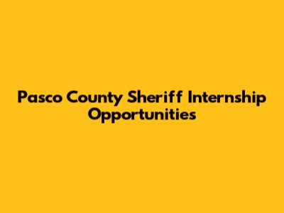 Pasco County Sheriff Internship Opportunities