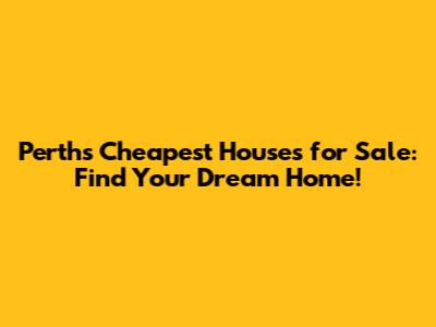 Perth's Cheapest Houses For Sale: Find Your Dream Home!