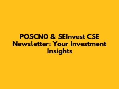 POSCN0 & SEInvest CSE Newsletter: Your Investment Insights