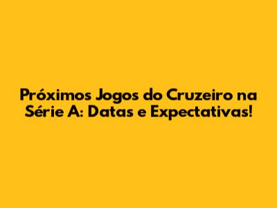 Próximos Jogos Do Cruzeiro Na Série A: Datas E Expectativas!