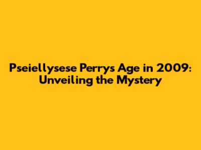 Why focus on 2009? Well, for many public figures, specific years can be significant due to major events, career milestones, or personal achievements. Understanding Pseiellysese Perry's age in 2009 can provide context to her activities and accomplishments during that year.