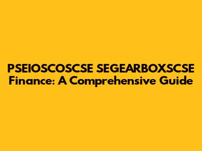 PSEIOSCOSCSE SEGEARBOXSCSE Finance: A Comprehensive Guide