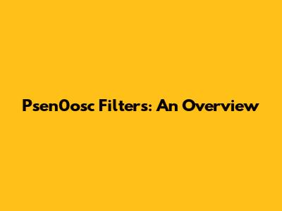 Key Applications of Psen0osc Filters