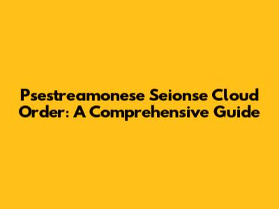 Psestreamonese Seionse Cloud Order: A Comprehensive Guide