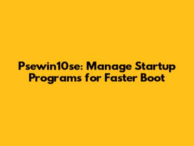 Psewin10se: Manage Startup Programs For Faster Boot