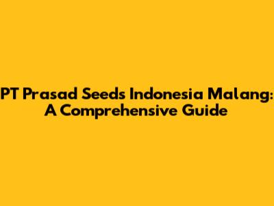 PT Prasad Seeds In Malang: A Comprehensive Guide