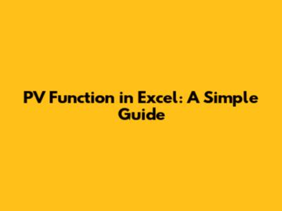 PV Function In Excel: A Simple Guide