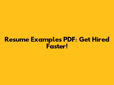 Resume Examples PDF: Get Hired Faster!
