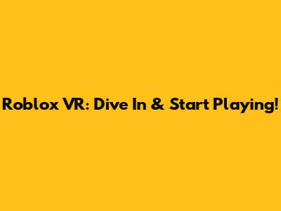 Roblox VR: Dive In & Start Playing!