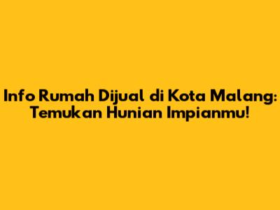 Mencari rumah dijual di Kota Malang adalah langkah besar dan menarik! Malang, dengan udaranya yang sejuk, pemandangan indah, dan perkembangan pesat, menjadi lokasi idaman bagi banyak orang. Apakah kamu salah satunya? Artikel ini akan memberikanmu informasi terkini dan terbaik seputar rumah dijual di Malang, mulai dari tips mencari, area populer, hingga kisaran harga. Jadi, simak baik-baik ya!