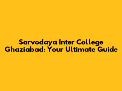 Sarvodaya Inter College Ghaziabad: A Comprehensive Guide