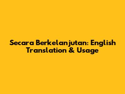 Secara Berkelanjutan: English Translation & Usage