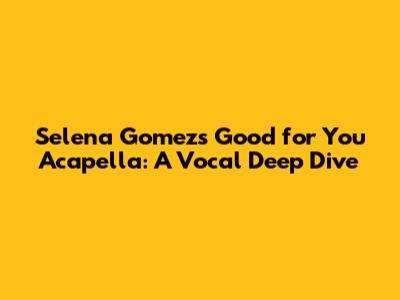 Hey everyone! Today, we're diving deep into Selena Gomez's incredible acapella version of "Good for You." This track isn't just a song; it's a testament to Selena's vocal growth and artistry. We will explore what makes this acapella so special, why it resonates with so many, and the technical aspects that make it a captivating listening experience. So, grab your headphones, and let's get started, guys!