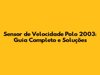 Sensor De Velocidade Polo 2003: Guia Completo E Soluções