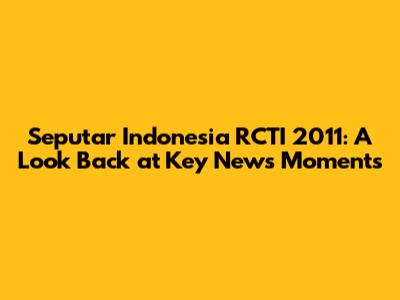 Hey guys! Let's take a trip down memory lane and revisit Seputar Indonesia RCTI 2011. This was a pivotal year, and RCTI's news coverage brought us all the significant events as they unfolded. From major political shifts to impactful social issues and international affairs, Seputar Indonesia was our go-to source for reliable information. We'll dive deep into the stories that shaped the year, analyze how they were presented, and discuss their lasting impact. So grab a coffee, get comfy, and let's explore the news landscape of 2011 through the lens of Seputar Indonesia on RCTI. We're going to cover a lot of ground, so buckle up!