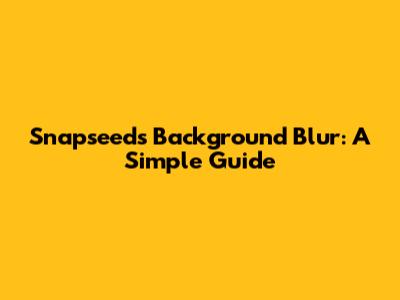 Snapseed's Background Blur: A Simple Guide