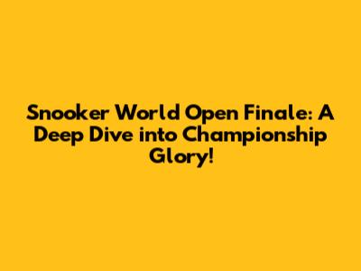 Snooker World Open Finale: Thrills, Spills, And Championship Glory!