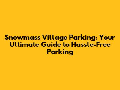 Snowmass Village Parking: Your Ultimate Guide