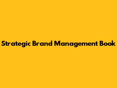 Strategic Brand Management Book