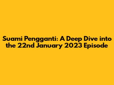 Hey guys! Let's dive into the drama! We're talking about "Suami Pengganti" (The Substitute Husband) and specifically, the full episode that aired on January 22nd, 2023. If you're a fan, you know this show is a rollercoaster of emotions, full of twists, turns, and those characters we love (and sometimes love to hate!). This recap is your go-to guide if you missed it, or if you just want to relive all the juicy details. We'll be breaking down the key plot points, character interactions, and those cliffhangers that keep us all coming back for more. So, grab your snacks, settle in, and let's get started. "Suami Pengganti" isn't just a soap opera; it's a cultural phenomenon, sparking conversations and capturing the hearts of viewers across the nation. This episode, in particular, was a pivotal one, setting the stage for future drama and revealing hidden truths that shook the foundations of the characters' lives. We'll explore the emotional landscape of each character, analyzing their motivations and the consequences of their actions. Understanding the intricate relationships and the complex web of secrets is key to truly appreciating the depth of the storyline. The show's writers are masters of suspense, and this episode is a testament to their skill, leaving viewers eager to discover what will happen next. Get ready for a thrilling journey through love, betrayal, and the pursuit of happiness within the intricate world of "Suami Pengganti".