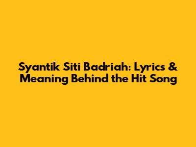 Syantik Siti Badriah: Lyrics & Meaning Behind The Hit Song