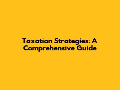 Taxation Strategies: A Comprehensive Guide