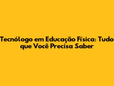 Tecnólogo Em Educação Física: Tudo Que Você Precisa Saber