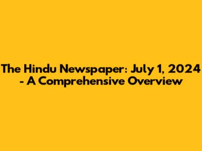 The Hindu: July 1, 2024 - News & Updates