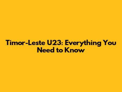 Timor-Leste U23: Everything You Need To Know