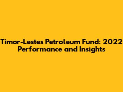 Timor-Leste's Petroleum Fund: 2022 Performance And Insights
