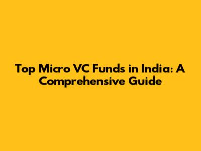 Top Micro VC Funds In India: A Comprehensive Guide