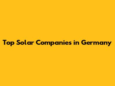 Top Solar Companies In Germany