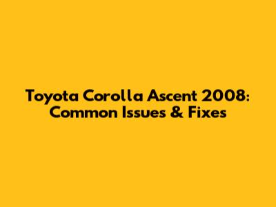 Toyota Corolla Ascent 2008: Common Issues & Fixes