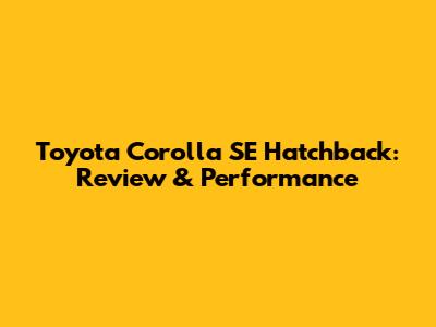 Toyota Corolla SE Hatchback: Review & Performance