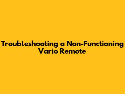 Troubleshooting A Non-Functioning Vario Remote