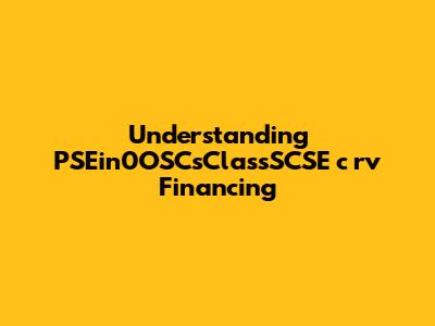 Understanding PSEin0OSCsClassSCSE C Rv Financing