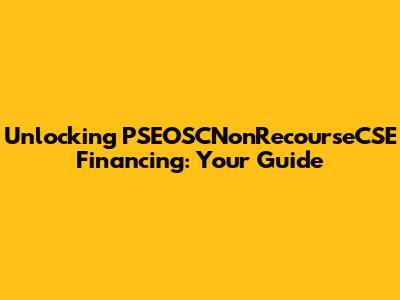 Hey guys! Ever heard of PSEOSCNonRecourseCSE financing? Sounds like a mouthful, right? Don't worry, we're going to break it down and make it super easy to understand. In this guide, we'll dive deep into what this type of financing is all about, why it's important, and how you can potentially use it to your advantage. Whether you're a seasoned investor or just starting out, understanding the ins and outs of PSEOSCNonRecourseCSE financing can open up new opportunities for you. So, buckle up, and let's get started on this exciting journey of exploring this financial tool. We'll be looking at everything from the basic concepts to the practical applications, ensuring you have a solid grasp of this subject. By the end of this guide, you should be well-equipped to make informed decisions and navigate the world of finance with confidence. This guide aims to be your one-stop resource for everything related to PSEOSCNonRecourseCSE financing. Let's make finance less intimidating and more accessible, shall we?