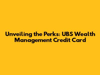 Unveiling The Perks: UBS Wealth Management Credit Card