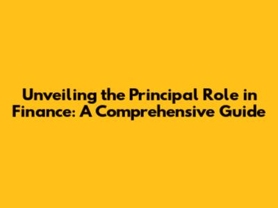 Unveiling The Principal Role In Finance: A Comprehensive Guide