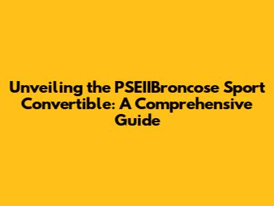 Unveiling The PSEIIBroncose Sport Convertible: A Comprehensive Guide