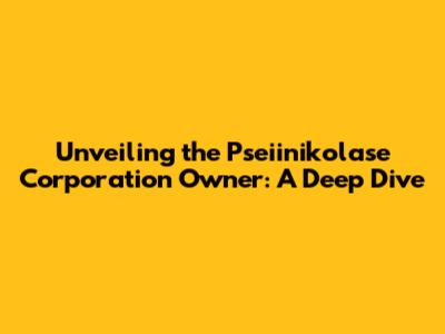 Unveiling The Pseiinikolase Corporation Owner: A Deep Dive