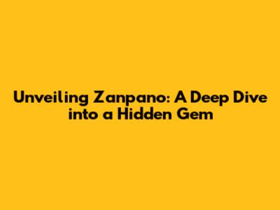 Unveiling Zanpano: A Deep Dive Into A Hidden Gem