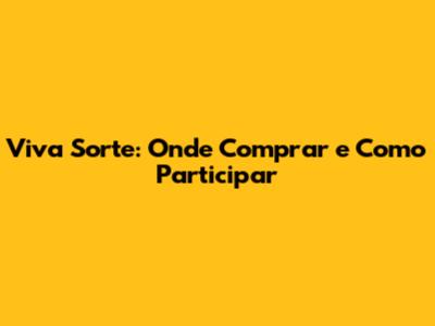 Viva Sorte: Onde Comprar E Como Participar