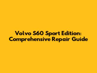 Volvo S60 Sport Edition: Comprehensive Repair Guide