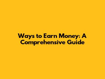 Ways To Earn Money: A Comprehensive Guide