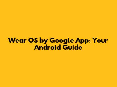 Wear OS By Google App: Your Android Guide